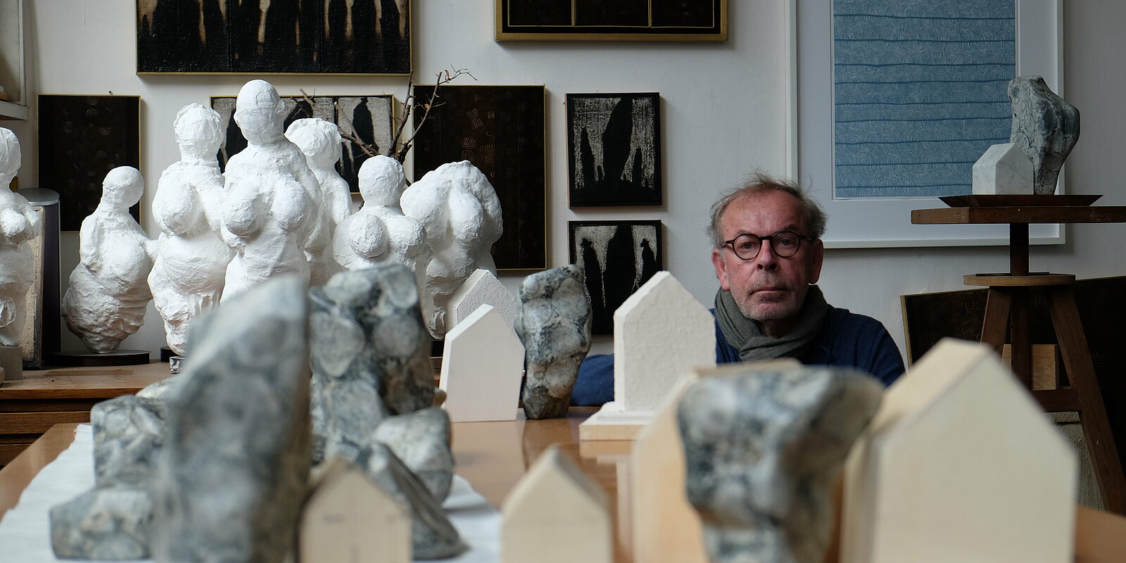 Die Serie der Écritures, die sich auf die rätselhaften vorchristlichen Inschriften von Gavrinis beziehen, werden in den Dialog gesetzt mit Skulpturen, der Serie „Mégalithe et maison“ in orbicular diorite and marble, die zwischen 2018 und 2022 entstanden sind und Chapelles/Reposoirs, Holzobjekten, die seine Écritures umschließen wie ein Heiligtum.