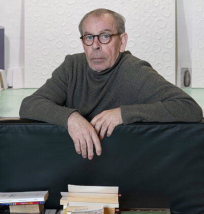 In addition to the motifs of his Breton homeland, the materials used play an essential role in the artist's work. He often covers his canvas works with a layer of varnish, which lends complexity and depth to the reduced formal language of his works.