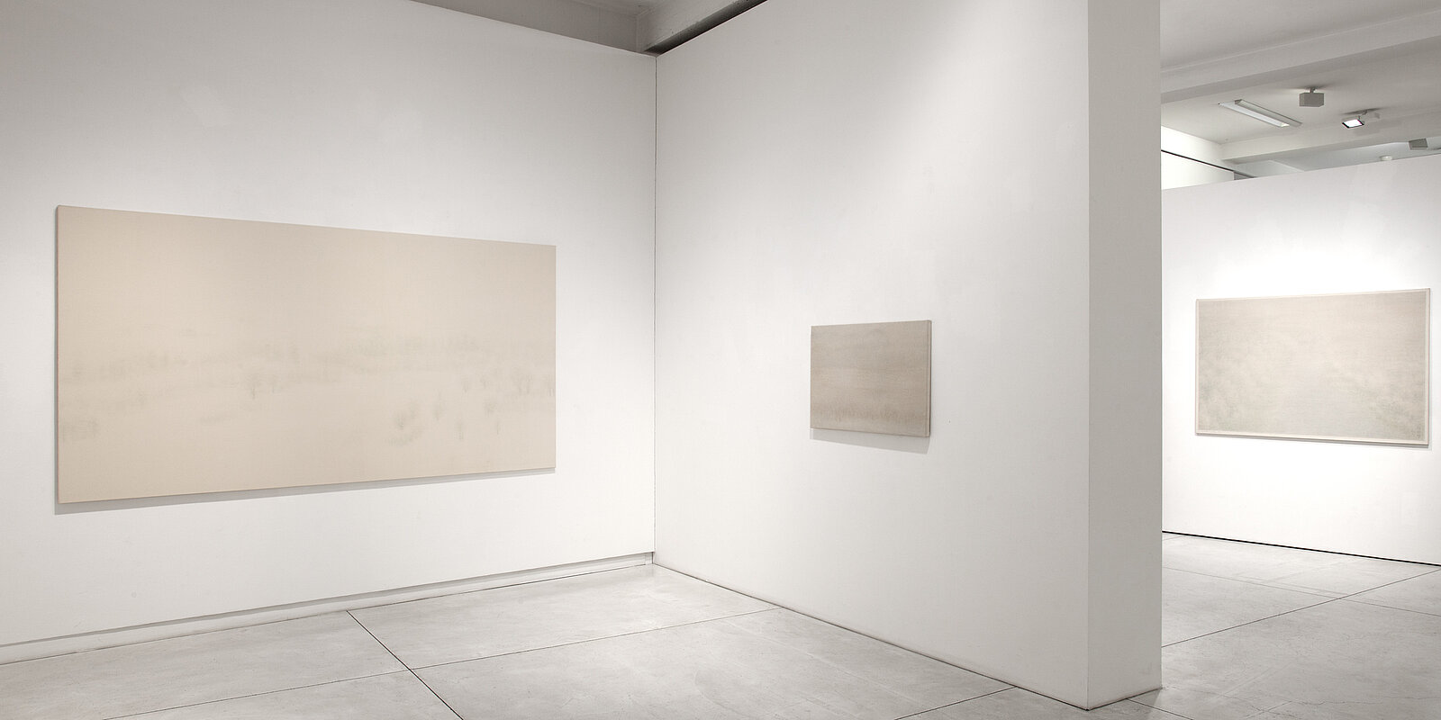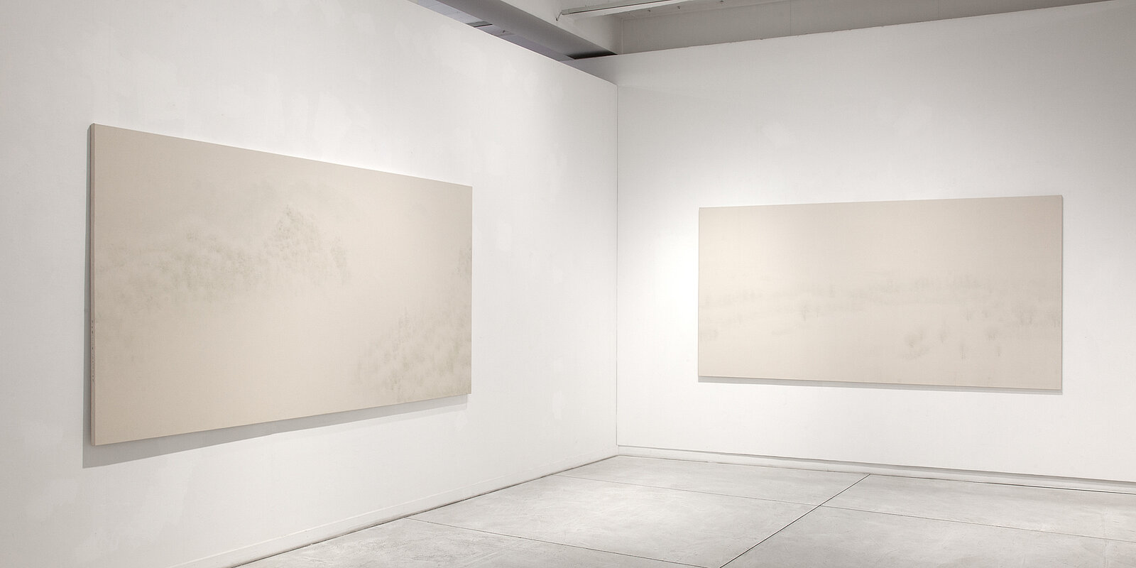 At first glance, Qiu Shihua’s paintings appear almost empty: luminous, restrained pictorial fields in which color and form seem to dissolve. Yet through sustained, concentrated, indeed contemplative and meditative, viewing, they gradually begin to reveal themselves in subtle nuances. Mountains, forests, and lakes cautiously emerge from the finest layers of color, always fragile and fleeting, only to withdraw again in the next moment. Seeing becomes a time-bound process that resists acceleration, whose outcome remains inherently ephemeral. His painting does not unfold at a single glance, but rather as a gentle coming-into-being and fading-away, demanding attention and devotion.