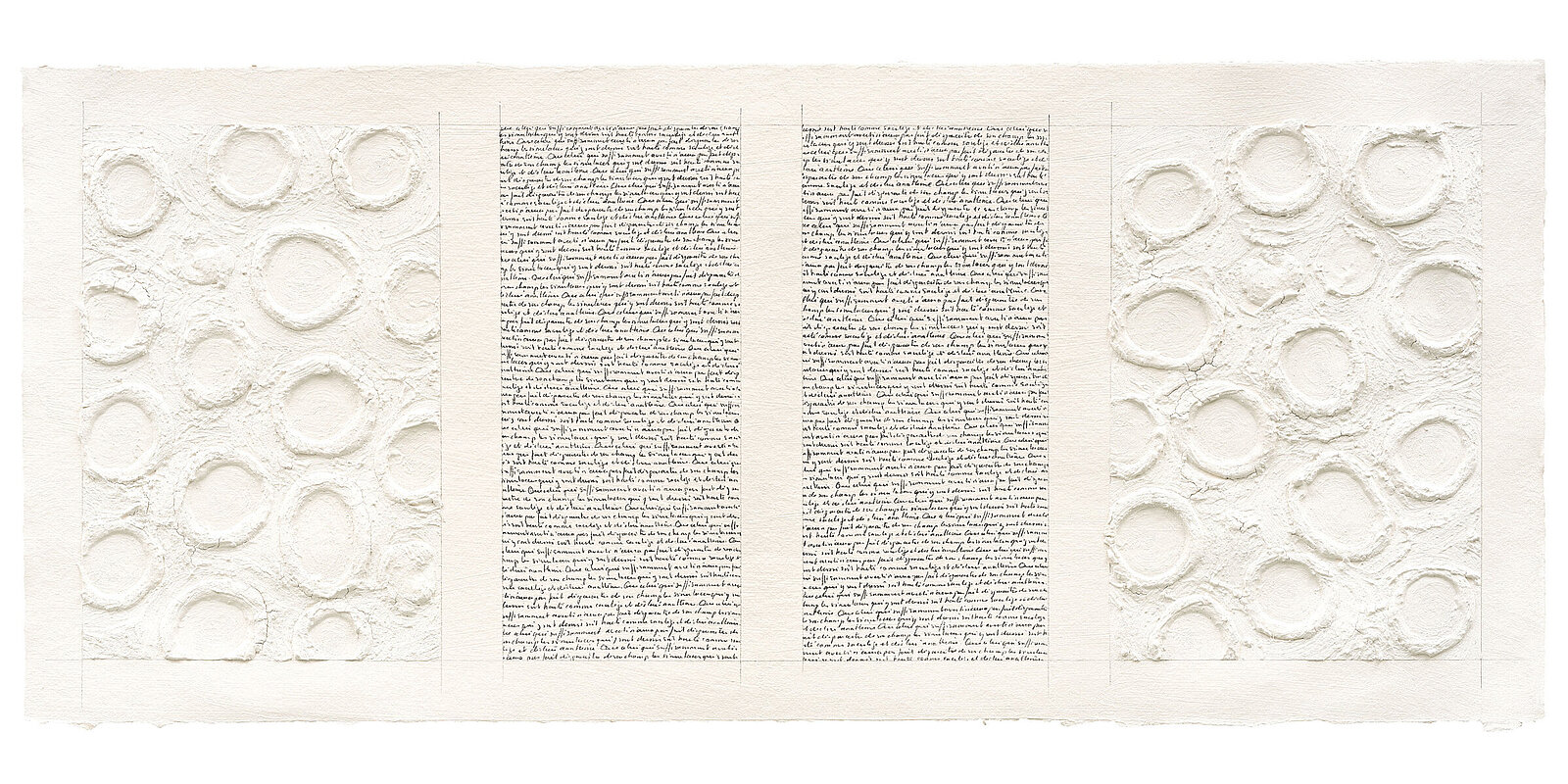 Écritures et Cupules, 2023, Acrylic and pencil on paper, 55 x 127 cm / 21 2/3 x 50 in