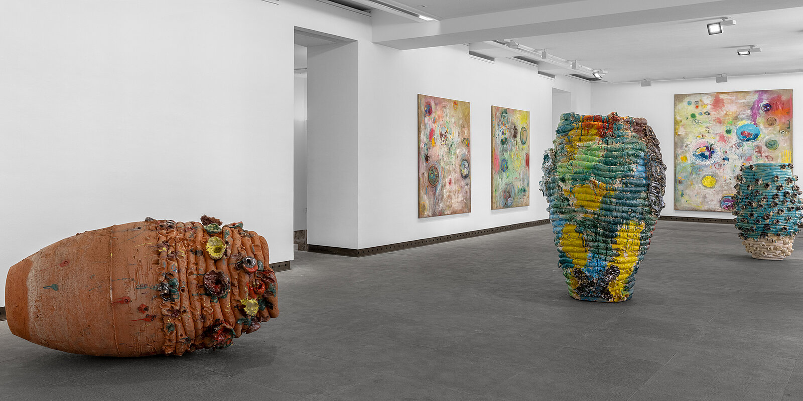 Souvent de grand format, ses sculptures évoquent des formes archaïques et symboliques, telles des amphores ou totems hybrides qui paraissent à la fois ancestraux et résolument contemporains. L’artiste se fait héritier d’une pratique de la céramique qui le rapproche de Lucio Fontana, dont il découvre le travail à la Galerie Karsten Greve.