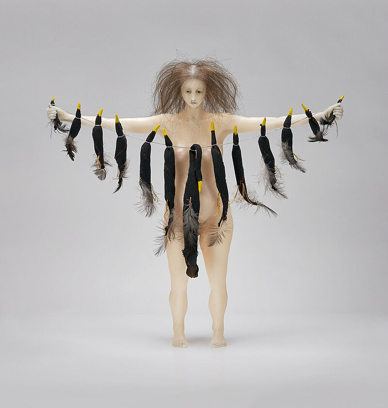 Claire Morgans fragile, hängende Installationen spiegeln das Interesse der Künstlerin an natürlichen Prozessen und organischen Materialien wider. In ihren Arbeiten setzt sich die junge, 1980 in Belfast geborene Künstlerin mit den elementaren Bedingungen des Menschen innerhalb seines Lebensraumes auseinander und zeigt die Unmöglichkeit auf, die Komplexität von Leben und Tod zu erfassen: “Exploring the physicality of animals, death, and illusions of permanence in the work is my way of trying to come to terms with these things myself.” Anmut und Schönheit, aber auch Sinnlosigkeit und Horror, sind in ihren Installationen und Zeichnungen präsent. Poetisch und irritierend zugleich bringt sie damit die Ambivalenz des Lebens in ihren Werken zum Ausdruck. Auch in ihrer jüngsten Werkgruppe setzt sie sich mit diesen Themen auseinander und arbeitet zum ersten Mal figurativ. Weibliche Figuren und Tiere, die miteinander im Dialog stehen, legen sukzessiv die Beziehungen sowohl zueinander als auch zu uns selbst und unserer Umwelt offen und zeugen von der stetigen Angst vor dem Unbekannten und dem Kontrollverlust.